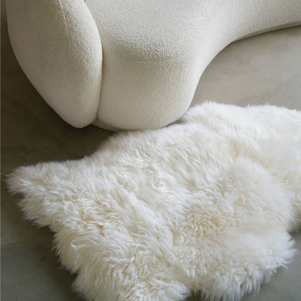 材質:純羊毛與純羊毛皮 (地毯底部有羊毛皮毛細孔為正常情形)