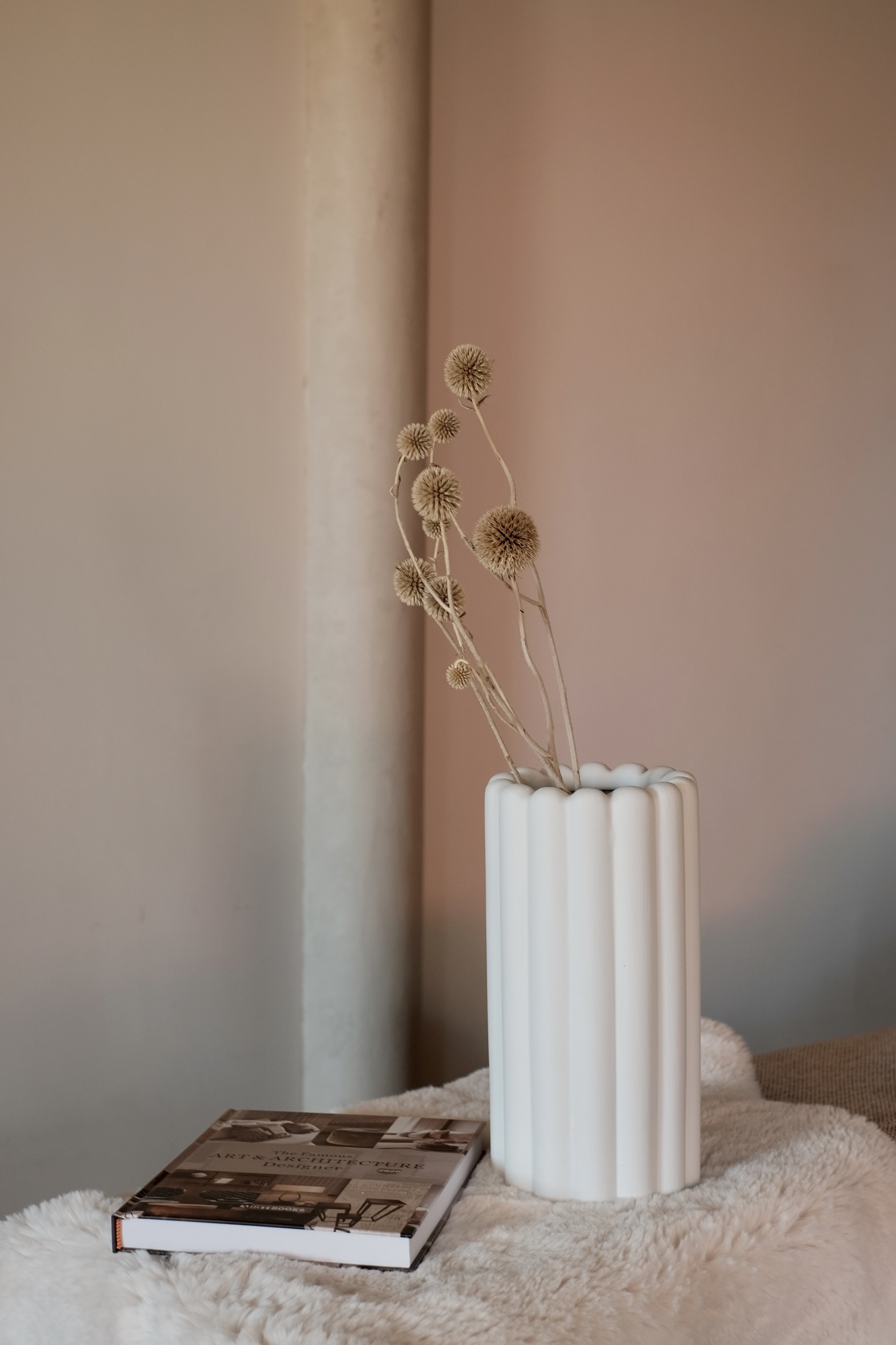 外觀如羅馬圓柱般挺拔,內層光滑,外層覆以細緻如魚子醬的紋理,交織出優雅的層次感。簡約而現代的設計,展現了大氣的風範,散發一種不言而喻的優雅氣質。特別適合搭配經典大型花卉,將空間的格調提升至極致。