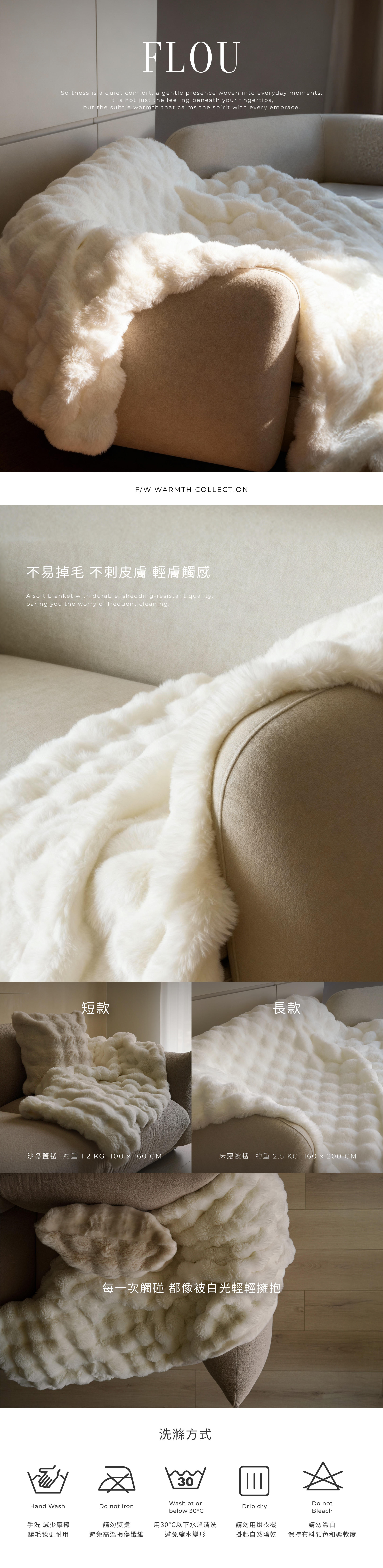 Flou 以純白為靈感,不易掉毛,不掉色,