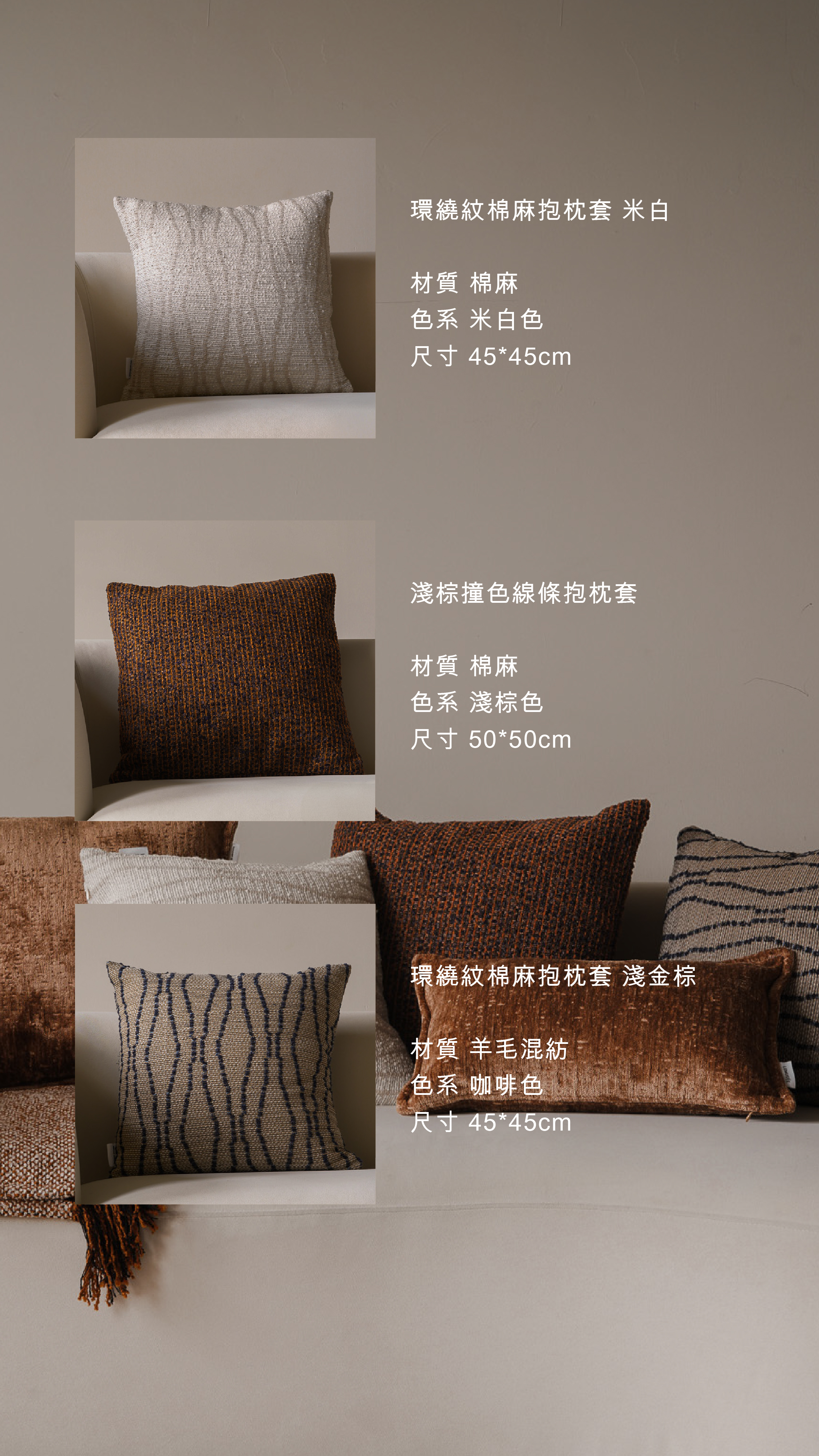 Motif 環繞紋棉麻抱枕套 淺金棕 $1,880 45cm x 45cm(不含枕芯)