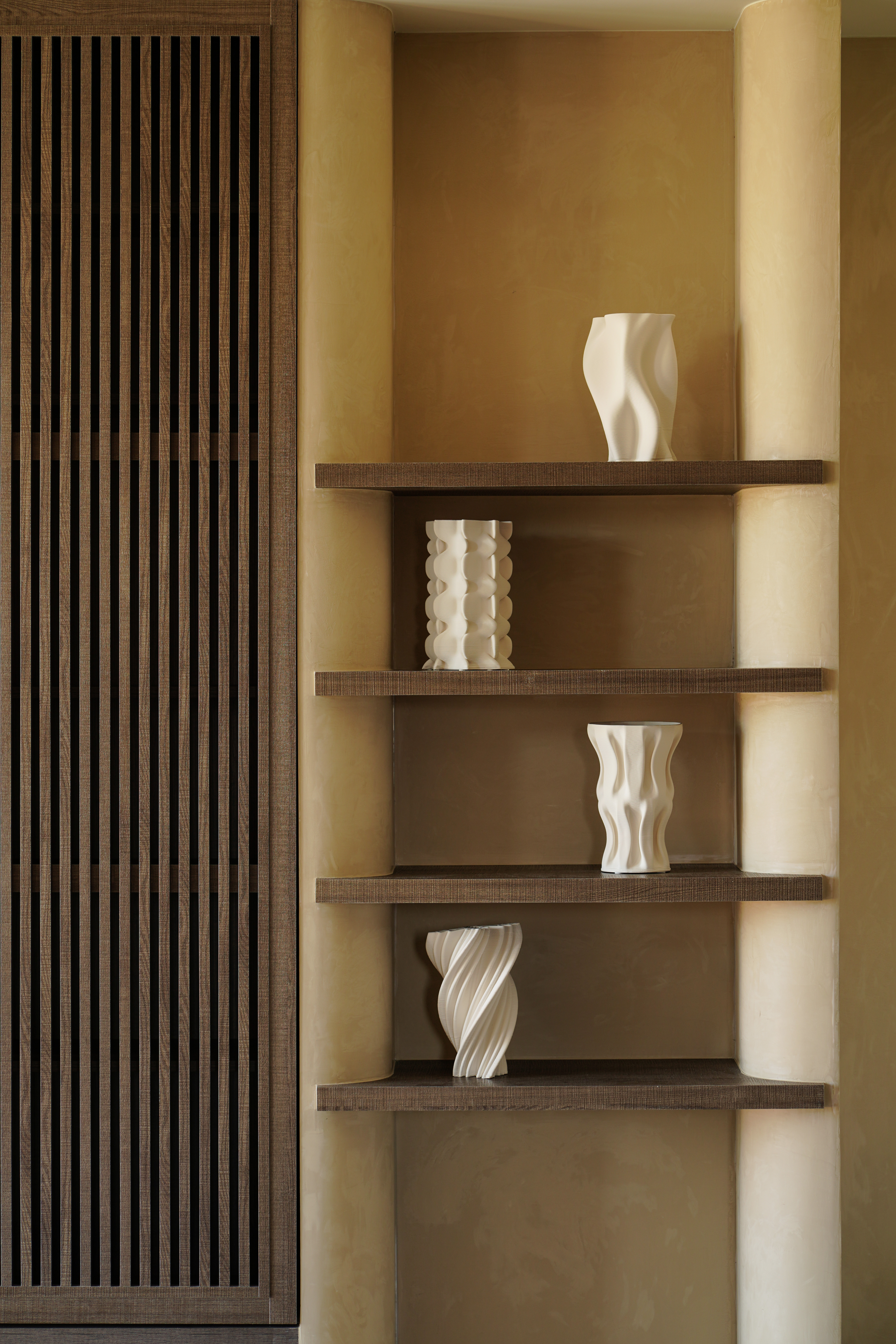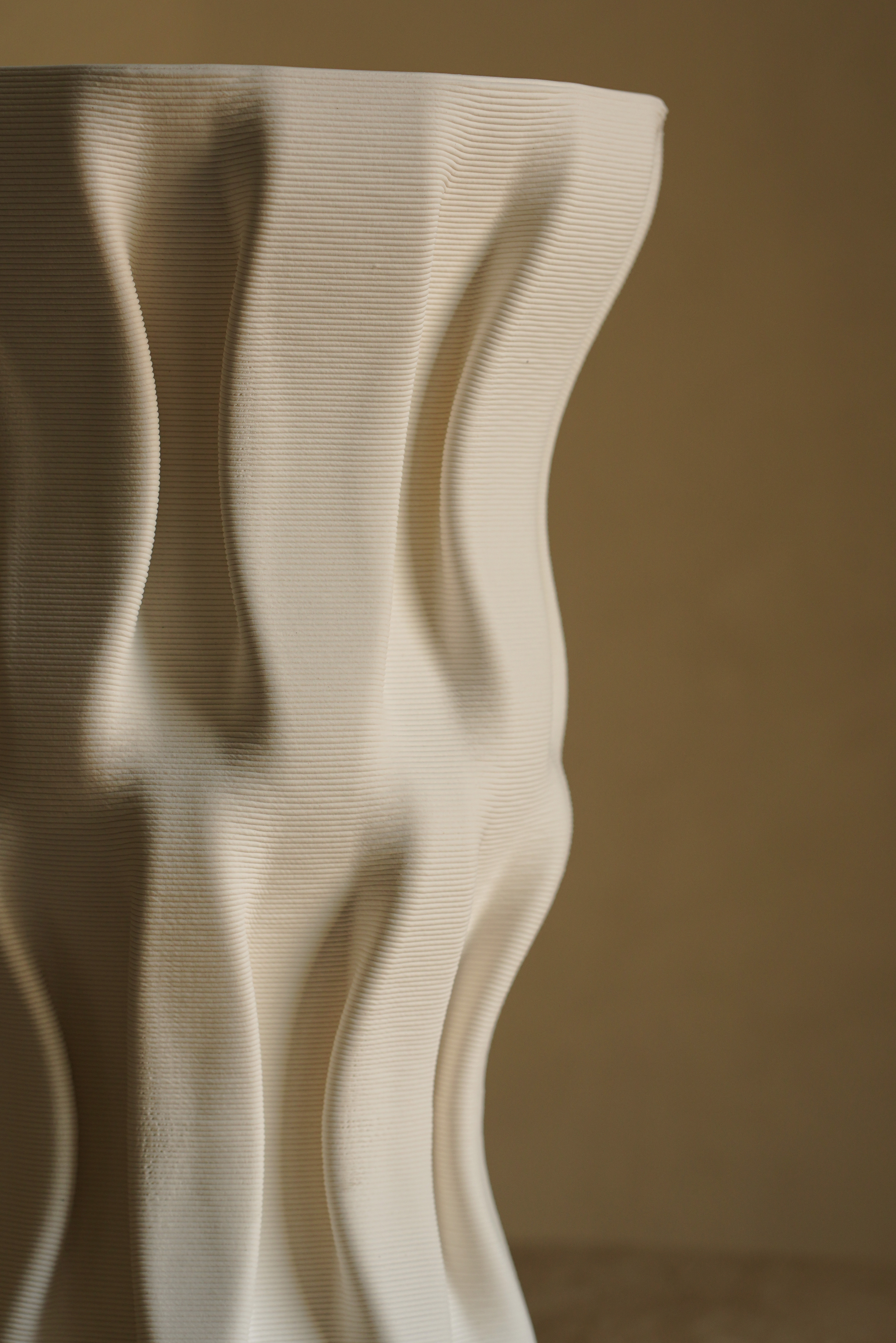雙曲線皺摺花器,利用3D列印技術將細緻條紋,靈活展現出立體美感。