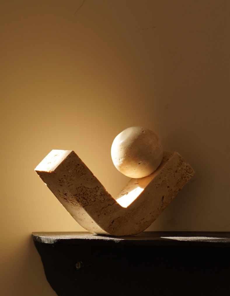 圓球輕輕附於倒三角之上,猶如流動的月光舞動著,